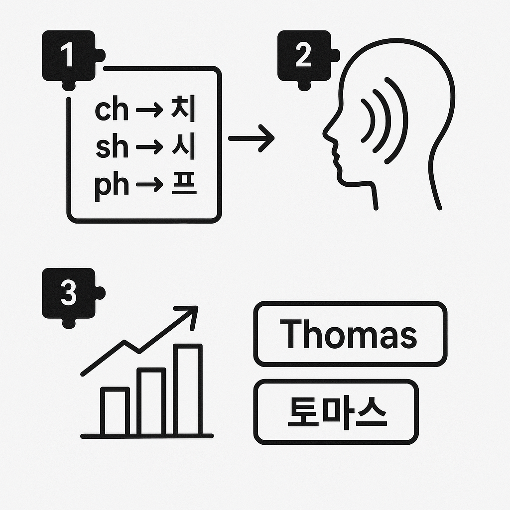 “단순히 철자만 한글로 바꾸는 것 아닌가?”라고 생각할 수 있지만, 실제 자동 변환 과정은 다음과 같이 꽤 체계적입니다.