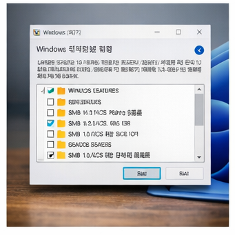 제어판 → 프로그램 → Windows 기능 켜기/끄기 → SMB 1.0/CIFS 파일 공유 지원 항목을 점검합니다.