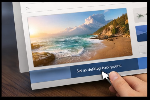 이미지를 저장한 뒤 설정하는 것이 안정적입니다. 일부 브라우저에서는 “이미지를 바탕화면 배경으로 설정” 기능을 지원하기도 합니다.