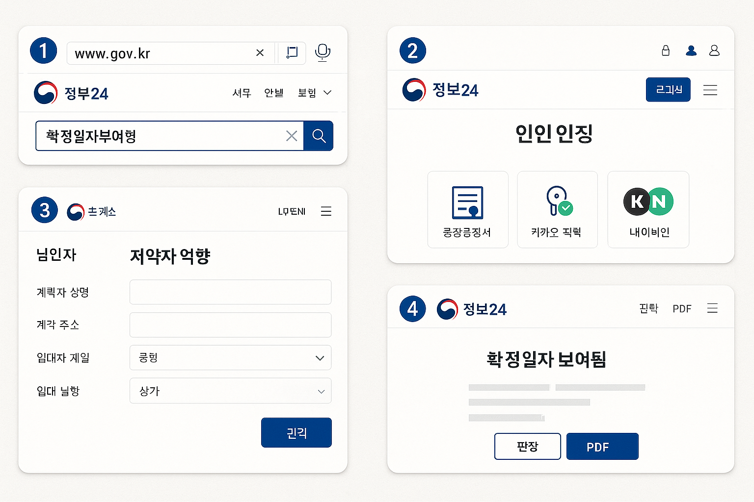 주택임대차 계약을 체결했다면 확정일자가 제대로 부여되었는지 확인하는 일은 반드시 필요합니다. 이제는 주민센터를 방문하지 않아도 정부24에서 온라인으로 바로 조회·발급할 수 있어 훨씬 편리합니다.