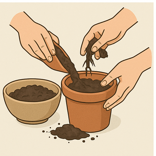 흙 속에 마른 뿌리나 줄기, 잎이 섞여 있다면 가능하면 제거해 주세요.