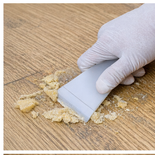 - 플라스틱 스크레이퍼로 부드럽게 본드 잔여를 긁어냅니다.