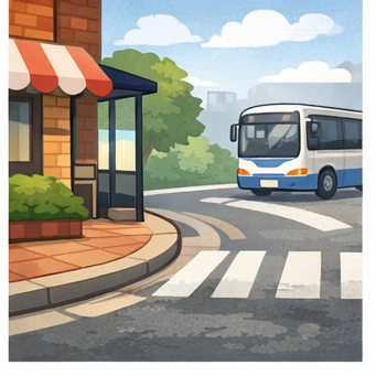 - 교차로 모퉁이, 횡단보도, 버스정류장