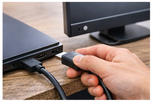 - HDMI 케이블 → 노트북과 모니터 HDMI 포트에 직접 연결