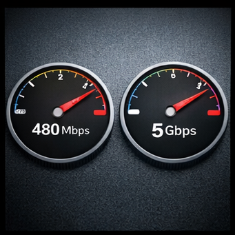 USB2.0의 최대 전송 속도는 480Mbps이며, USB3.0은 최대 5Gbps까지 지원합니다. 이론상 약 10배 이상의 차이를 보입니다. 특히 외장하드, SSD, 고해상도 영상 파일을 다루는 환경에서는 체감 속도 차이가 매우 크게 느껴집니다.