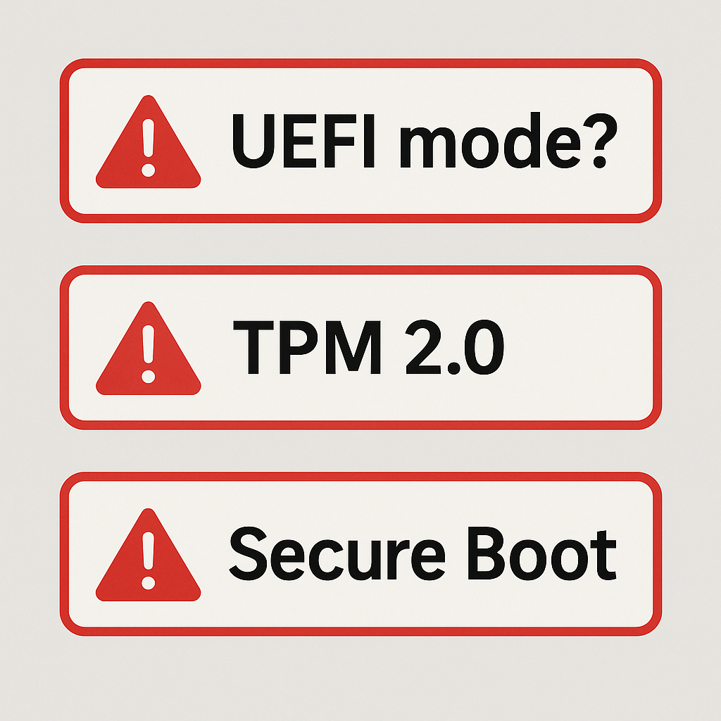 - Secure Boot·TPM 등 윈도우11 보안 요구사항 미충족