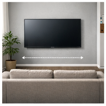 거실이 좁은 경우 화면이 부담스럽게 느껴질 수 있으므로 소파 위치를 먼저 확인하시는 것이 좋습니다. UHD(4K) 해상도의 경우 비교적 가까이에서도 선명하게 볼 수 있어 2m 거리도 가능하지만, 장시간 시청 시 눈의 피로를 고려해야 합니다.