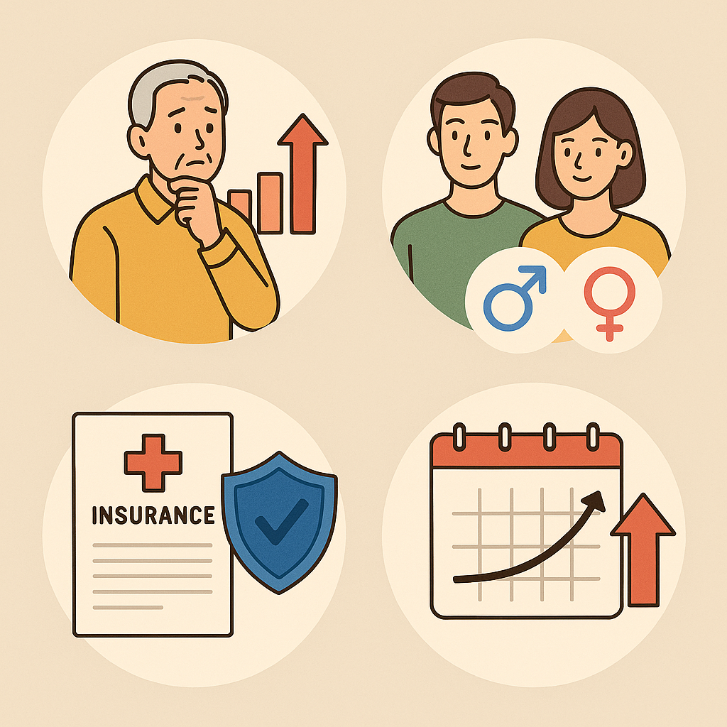 나이 증가와 의료비 통계를 반영해 조정되며 개인별 차이가 큽니다.