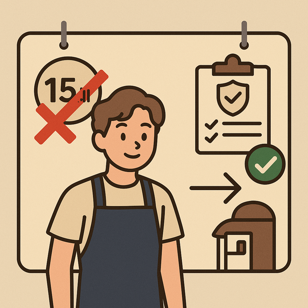 - 만 15세 생일이 지나지 않은 상태에서 근무 시작