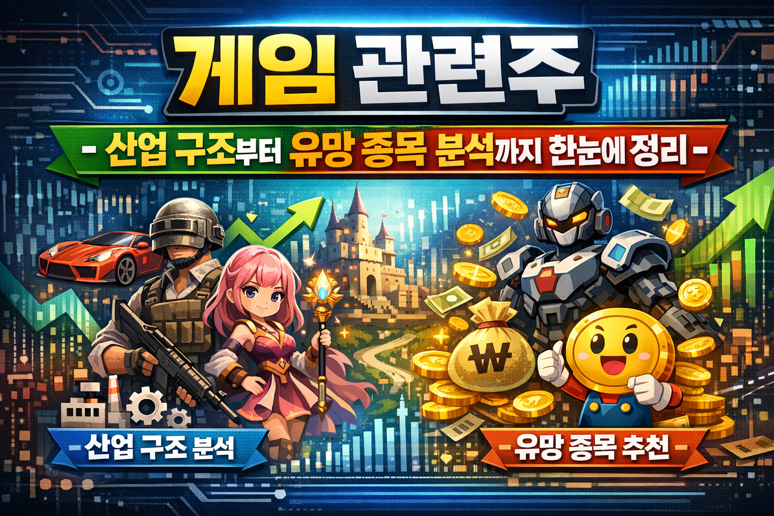 게임관련주는 PC·모바일·콘솔 등 다양한 플랫폼에서 게임을 개발·퍼블리싱하거나, 게임 서비스와 직접적으로 연결된 사업을 영위하는 기업들의 주식을 의미합니다. 최근에는 단순 게임 개발사를 넘어 메타버스, 블록체인, e스포츠, 스트리밍 등으로 산업 영역이 확장되면서 투자 범위도 넓어지고 있습니다. 게임 산업은 콘텐츠 중심 구조이기 때문에 흥행작 하나로도 실적과 주가가 크게 움직일 수 있는 특징이 있습니다. 특히 게임관련주는 신작 출시 일정, 글로벌 시장 진출, 업데이트 성과에 따라 단기 변동성이 크게 나타납니다. 반면 장기적으로는 IP(지식재산권) 확보 여부, 라이브 서비스 운영 능력, 해외 매출 비중이 기업 가치에 중요한 영향을 줍니다. 따라서 단순 테마 접근보다는 산업 구조와 수익 모델을 이해한 뒤 접근..