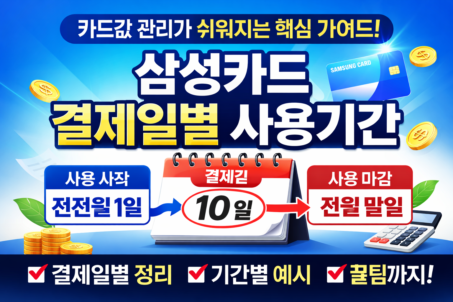 삼성카드 결제일별 사용기간은 카드 이용 금액이 언제부터 언제까지 청구되는지를 결정하는 기준입니다. 같은 금액을 사용하더라도 결제일 설정에 따라 청구서에 포함되는 기간이 달라지기 때문에, 월급일과 맞지 않으면 자금 관리가 어려워질 수 있습니다. 특히 카드 사용이 잦은 분들은 결제일을 잘못 설정하면 예상보다 카드값이 크게 느껴질 수 있습니다. 결제일별 사용기간을 정확히 이해하면 소비 패턴을 월 단위로 정리할 수 있고, 불필요한 연체나 자금 압박도 줄일 수 있습니다.핵심은 결제일 = 청구 기준일, 사용기간 = 실제 소비가 묶이는 기간이라는 점입니다. 이 구조를 이해하시면 카드 관리가 훨씬 수월해집니다. ! 핵심 포인트: 결제일을 바꾸면 카드값이 줄어드는 것이 아니라, 청구 시점만 달라집니다.! 관리 팁: 월급..