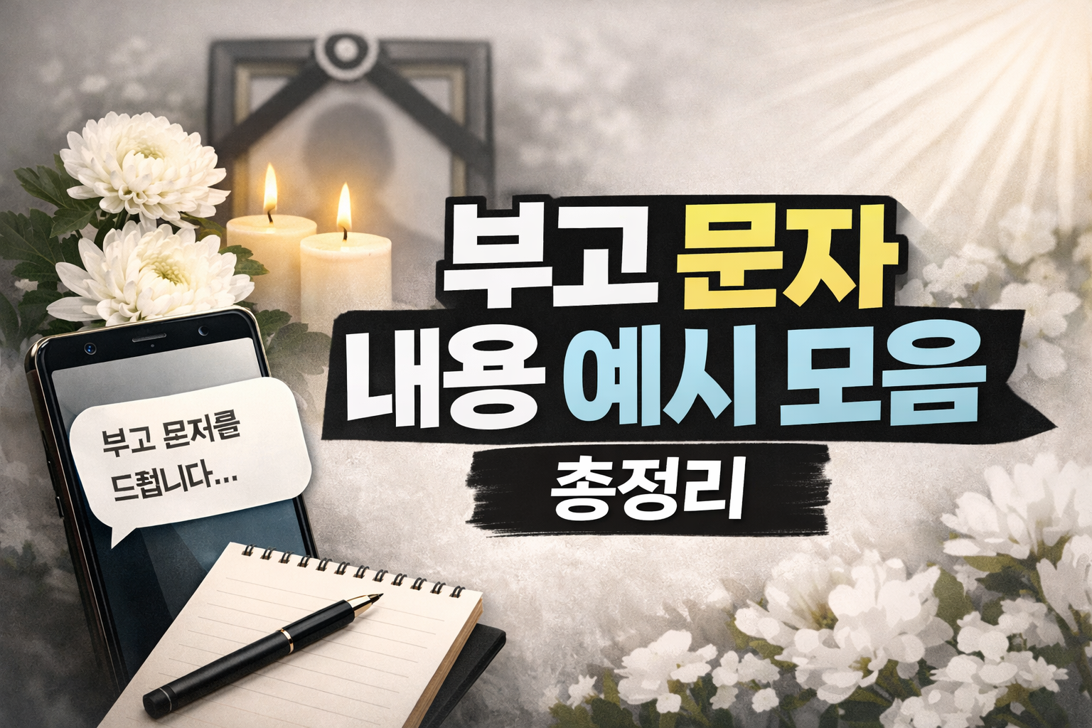 부고문자내용은 갑작스러운 상황 속에서도 고인의 소식을 정확하고 예의 있게 전달해야 하는 중요한 메시지입니다. 단순한 اطلاع가 아니라 고인에 대한 존중과 유가족의 마음을 담아야 하므로 표현 하나하나에 신중함이 필요합니다. 특히 문자로 전달하는 경우 간결하면서도 핵심 정보가 빠짐없이 들어가야 합니다. 부고문자내용의 기본 구성은 고인의 성함, 별세 일시, 빈소 위치, 발인 일정, 장지 정보, 유가족 연락처입니다. 이 여섯 가지 요소를 빠짐없이 포함하는 것이 원칙입니다. 너무 장황한 설명은 오히려 가독성을 떨어뜨릴 수 있으므로 간결하고 정중한 문장을 사용하시는 것이 좋습니다. ! 필수 포함 정보: 고인 성함, 별세 일시, 빈소, 발인 일시! 권장 표현: “삼가 알려드립니다”, “조문은 정중히 사양합니다” 등..